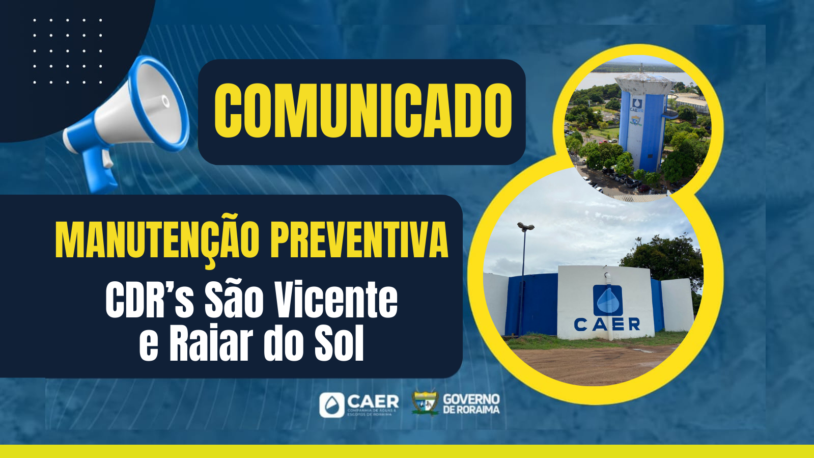 A Caer ressalta que é fundamental a manutenção do sistema para garantir a boa prestação dos serviços, agradece a compreensão de todos e disponibiliza canais de comunicação para que os usuários possam esclarecer dúvidas sobre saneamento básico diretamente com a Companhia.