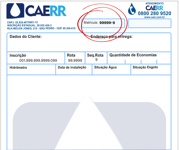 A matrícula do imóvel está localizada neste local em sua conta de água
